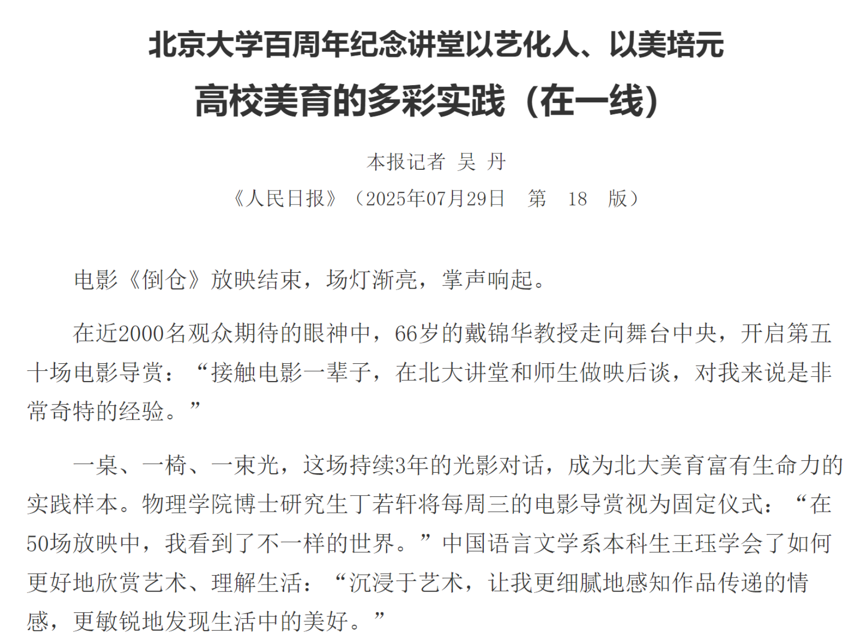 2025年人民日报以“高校美育的多彩实践”为题报道讲堂