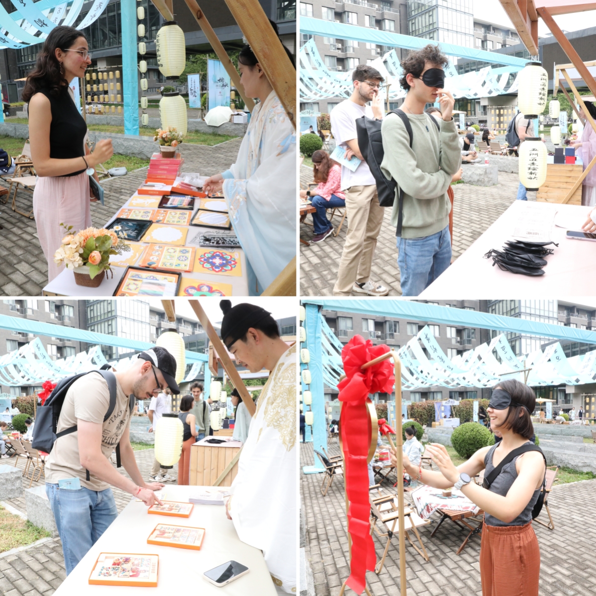 9月27日,中关新园花园广场迎来了一场别开生面的“国风市集”游园会。现场布幔轻悬,灯笼暖光点点,工作人员身着汉服,引领300余名学子步入东方美学画卷。